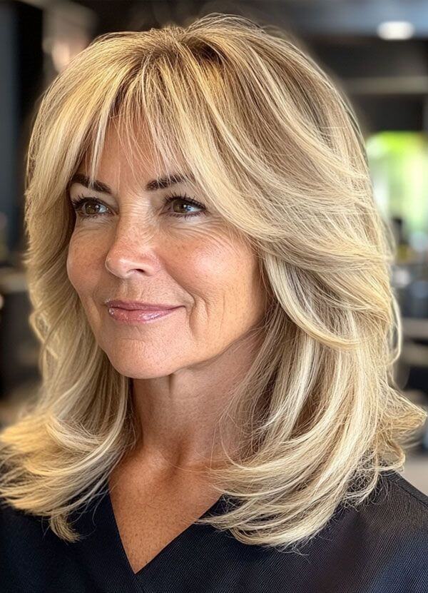 Layered cuts are one of the most suggested and flattering long hair styles for women over 60, both in style and functionality. Here’s why they’re an ideal pick: