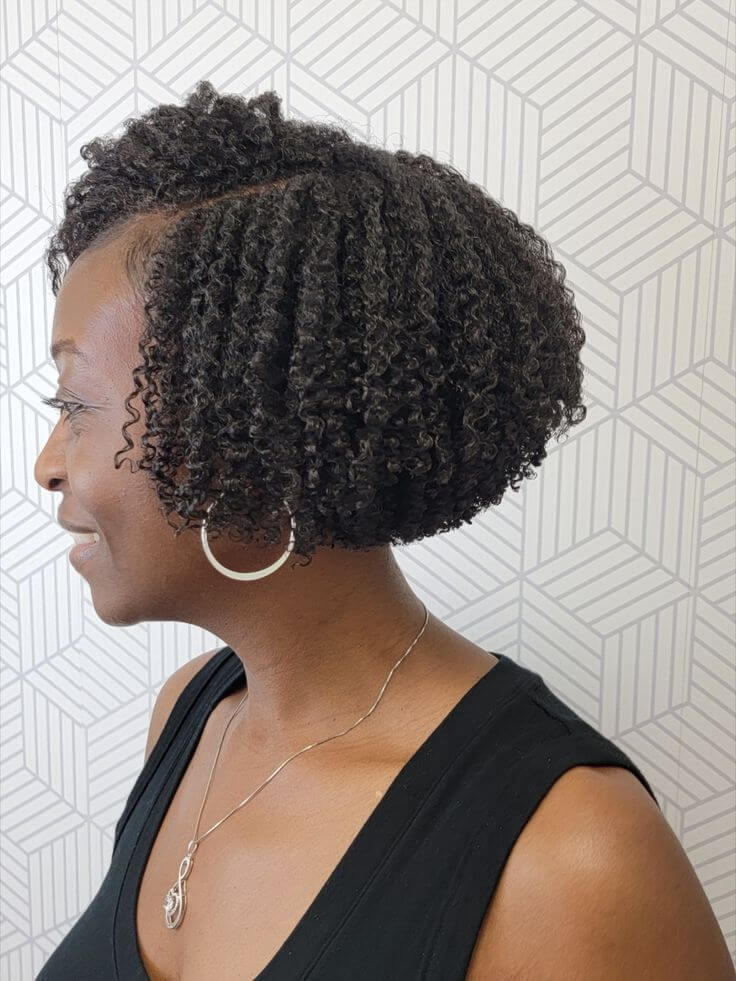 • A protective style that forms well-defined curls without the use of heat. It’s easy to care for and guards the edges of hair. It is one of the favourite low-maintenance short natural haircuts for black females, particularly those with kinky or curly hair. It entails twisting portions of hair and then unravelling them to form well-defined curls or waves.