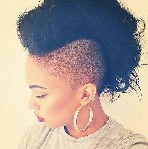• Mohawk style is chic, versatile, edgy and low-maintenance short natural haircuts for black females as it provides boldness while catering to natural texture. The cut usually consists of a strip on the head with longer hair flowing from the front to the nape of the neck and is accompanied by shorter or shaved sides.